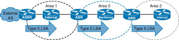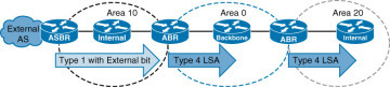 LSA Type 5는 ASBR이 생성하고 OSPF 외부 네트워크 설명에 사용됩니다. 재분배하는 네트워크 정보만 포함되어 있기 때문에 ASBR 정보를 알리기 위해 LSA Type 4를 사용 합니다.