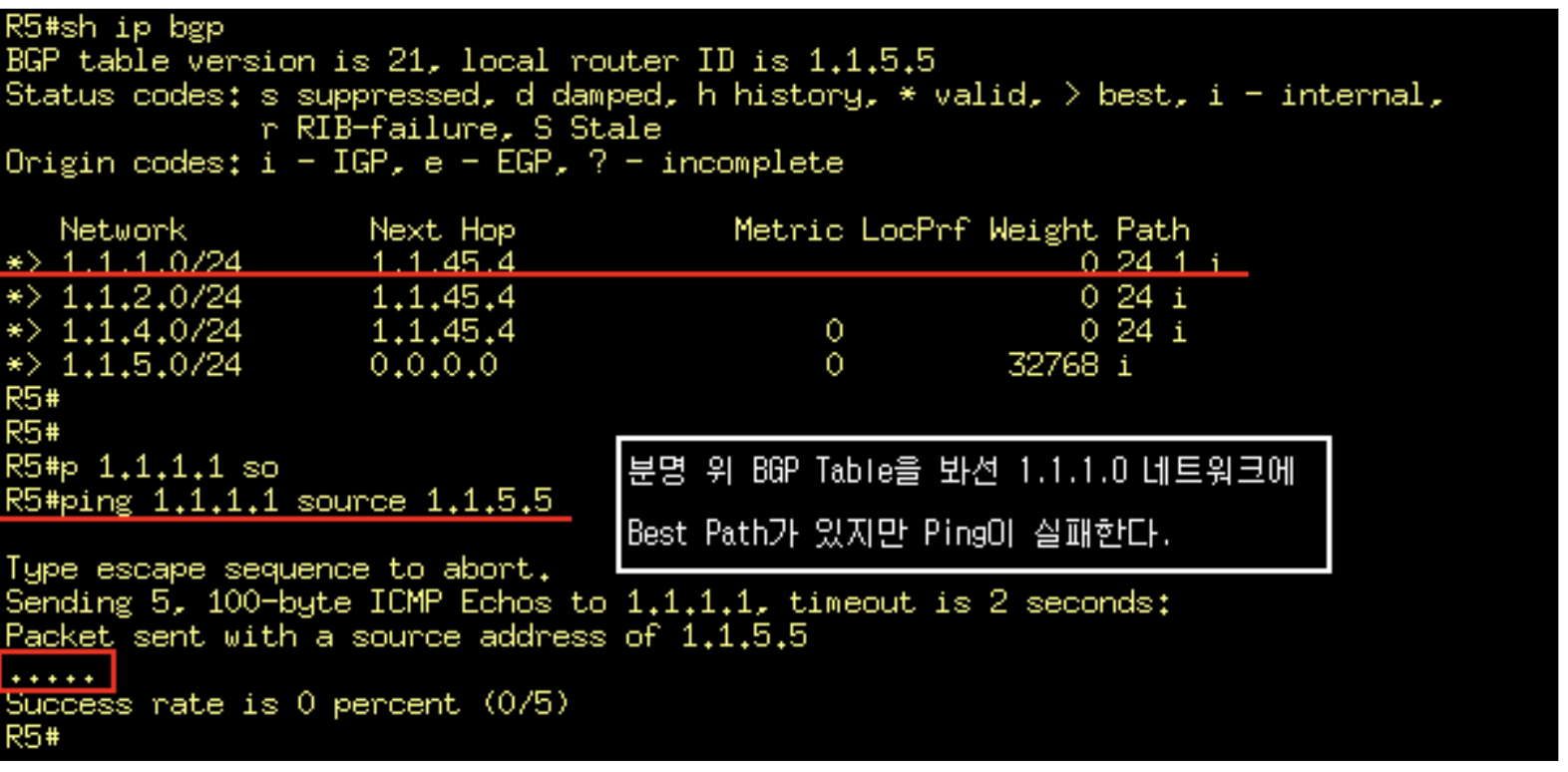 "IBGP 로 광고받은 네트워크는 IGP가 확인해주어야 한다."